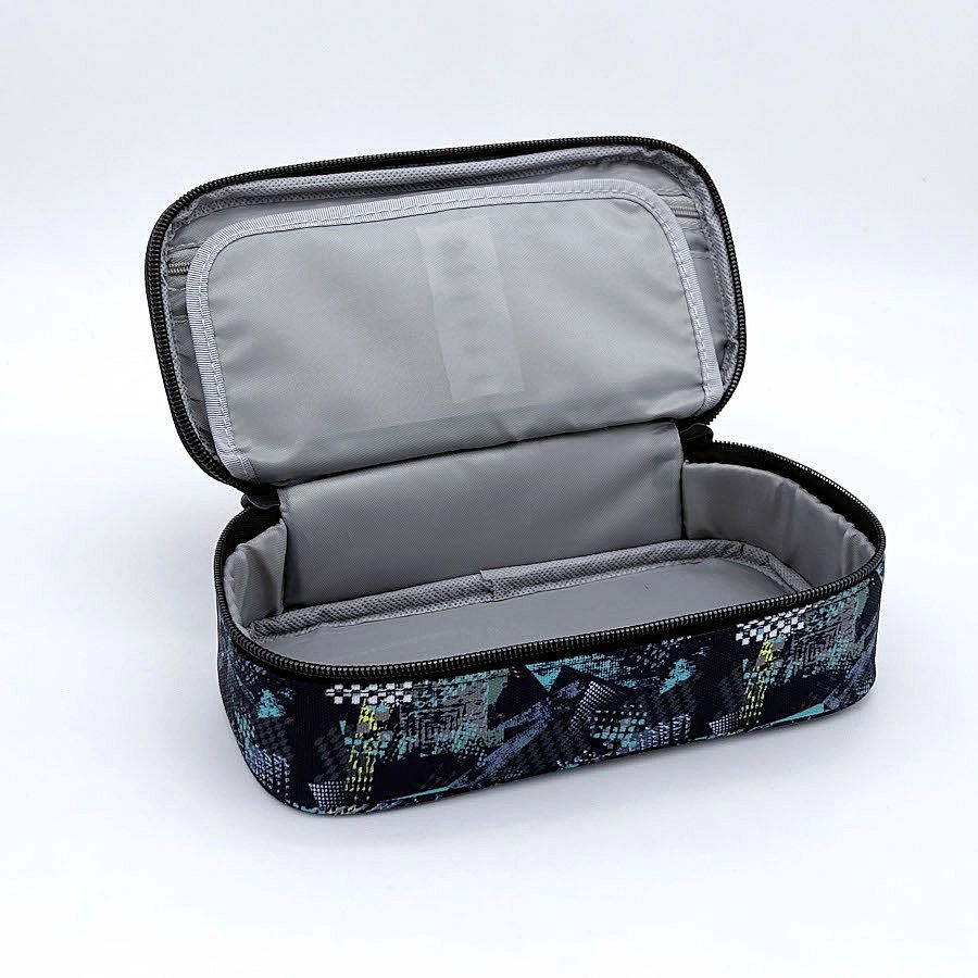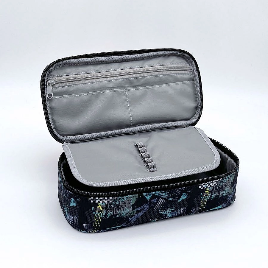 Unutarnji džep na patentni zatvarač skriva 2 manja otvorena džepića, 1 poseban džepić na patentni zatvarač i 5 elastičnih petlji za olovke, markere ili flomastere. Prostrani odlagališni prostor prima ostale školske potrepštine poput ravnala, škara ili ljepila.