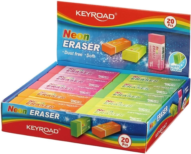 Neonska gumica KEYROAD idealan je izbor za školu, ured i kućnu upotrebu. Zahvaljujući mekom sastavu nudi nježno i učinkovito brisanje grafita bez oštećenja papira. Fluorescentne boje čine je ne samo praktičnim, već i atraktivnim dodatkom pernici.