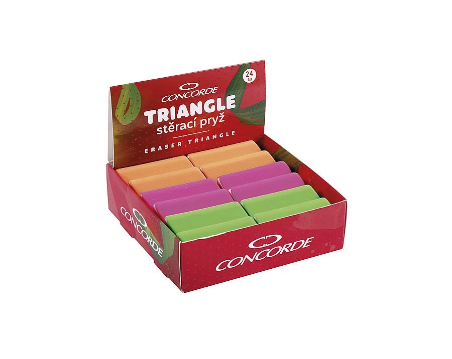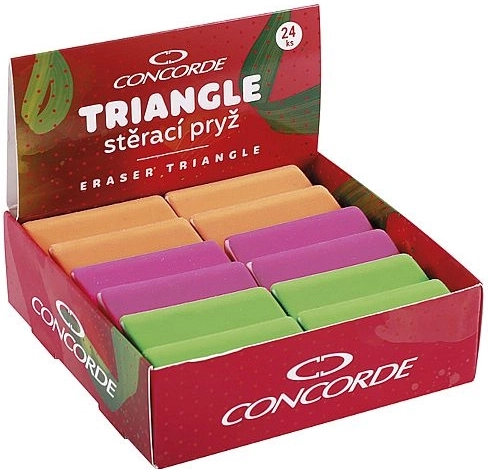 Trokutasta gumica CONCORDE Triangle dizajnirana je za udobno i precizno brisanje u svakodnevnoj školskoj i uredskoj upotrebi. Zahvaljujući ergonomskom trokutastom obliku lako se drži i omogućuje kontrolirano brisanje bez nepotrebnog razmazivanja.