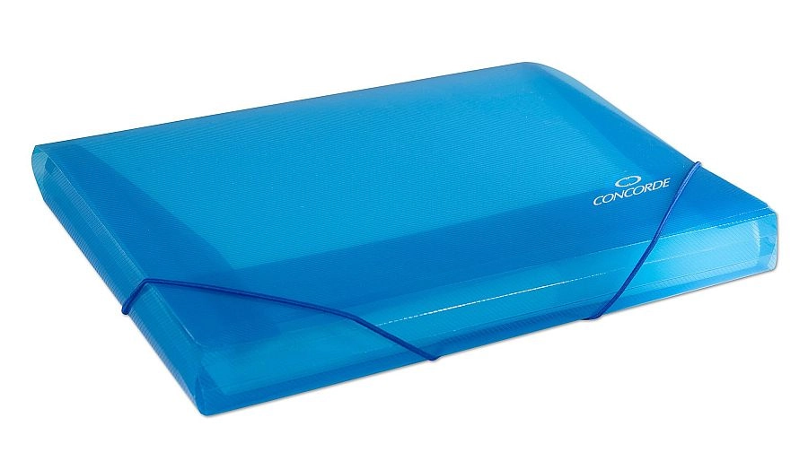 Praktične i izdržljive mape za spise s gumicom A4 u prozirno plavoj boji za sigurno pohranjivanje dokumenata. 3 preklopa štite sadržaj od ispadanja, ojačani rebrasti materijal debljine 450 mikrona osigurava dug vijek trajanja, a nakon preklapanja klapni mapu je moguće pretvoriti u spisovni box do visine 3,5 cm.