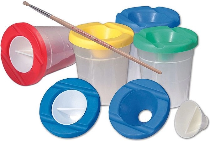 Praktična čaša za vodu CONCORDE visine 9 cm idealan je pomoćnik za slikanje i likovne aktivnosti. Zahvaljujući pametnom poklopcu s oznakom protiv prolijevanja voda pri prevrtanju ne istječe. Nudi dva utora za odlaganje kistova, izrađena je od izdržljivog i fleksibilnog materijala i dolazi u četiri varijante boja.