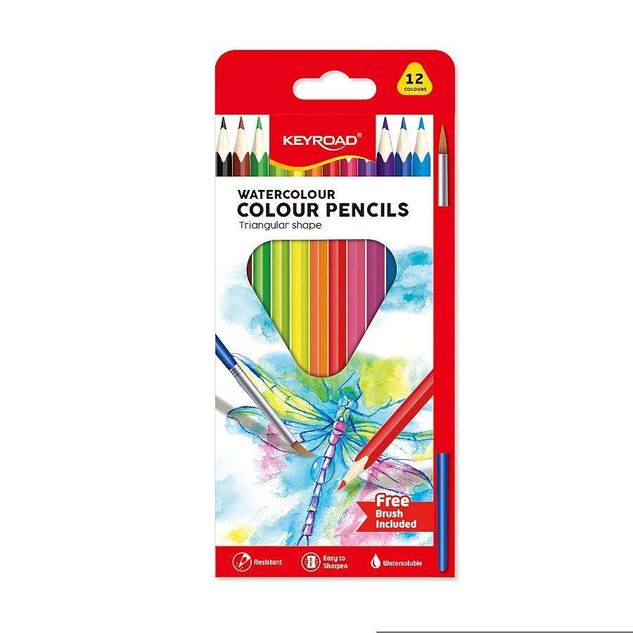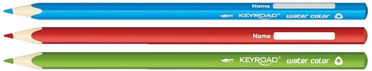 Akvarelne bojice KEYROAD donose spoj klasičnog crtanja i slikanja. Nacrtani motiv jednostavno razmažite kistom i kapljicom vode te ga pretvorite u ujednačene obojene plohe s nježnim prijelazima. Zahvaljujući otpornom srcu mine i kvalitetnom drvu bojice se manje lome i lako se šilje.