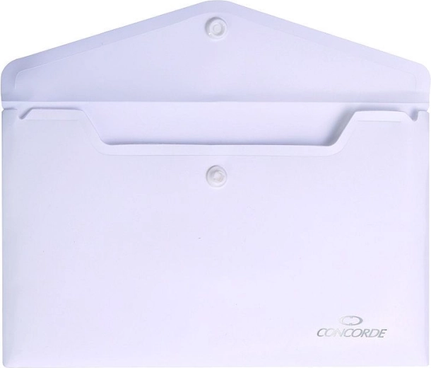 Praktične bijele mape CONCORDE u DL formatu s kvalitetnim drukom za sigurno zatvaranje. Izrađene od izdržljivog polipropilena debljine 180 mikrona za pouzdanu zaštitu dokumenata. Idealne za arhiviranje i prijenos u školi, uredu i na putu.