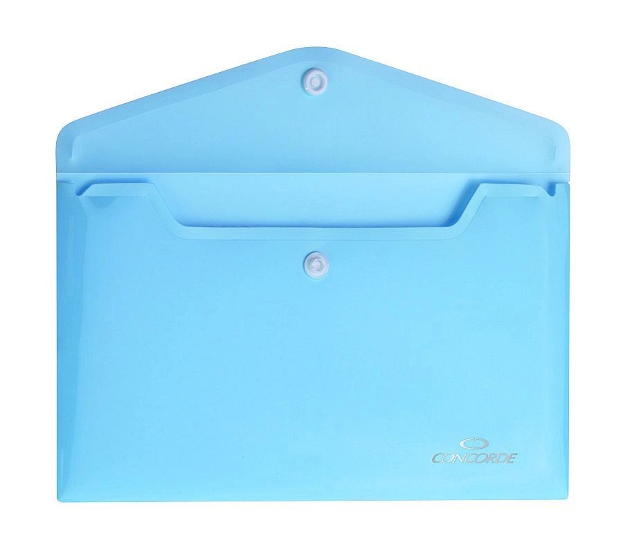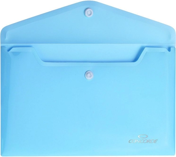 Praktične spisovne mape CONCORDE formata DL u elegantnoj pastelnoplavoj boji za pregledno i sigurno pohranjivanje dokumenata. Izrađene su od izdržljivog polipropilena debljine 180 mikrona te zahvaljujući pouzdanom druku osiguravaju sigurno zatvaranje. Idealan izbor za ured, školu i putovanja.