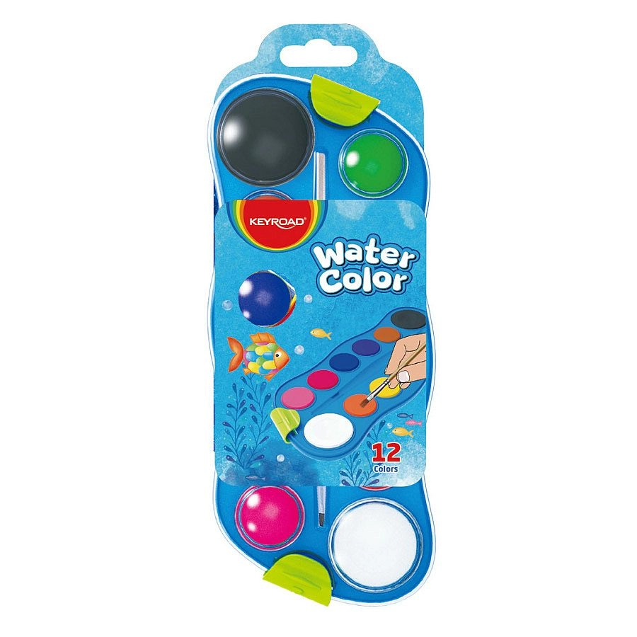Ovaj set vodenih boja KEYROAD osmišljen je za udobno i zabavno slikanje. Praktična slikarska paleta olakšava miješanje nijansi i održava radnu površinu urednom. Visoka pigmentacija osigurava intenzivne boje koje na papiru lijepo dolaze do izražaja.