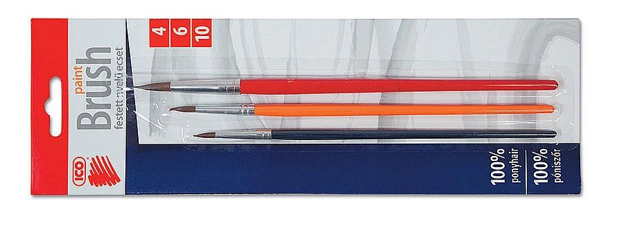 Praktičan set triju okruglih kistova ICO u veličinama 4, 6 i 10 idealan je za školu, hobi i atelje. Nudi kvalitetne dlakaste čekinje za fluidan potez, lakirane drvene drške za udobno držanje i univerzalnu primjenu za akvarel, gvaš i školske boje.