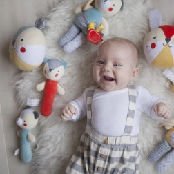 Dizajn PETIT COLLAGE kombinira kontrastne uzorke i žive boje za vizualnu stimulaciju, dok lagana konstrukcija olakšava držanje malim ručicama. Održiv izbor za roditelje koji traže sigurnu i ekološku igračku za novorođenče.