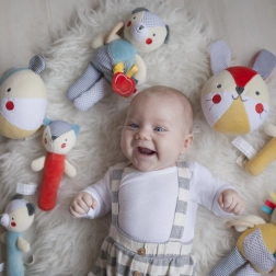 Kontrastni uzorci, raznolike teksture i nježni detalji potiču razvoj vida, dodira i fine motorike već od 0+.