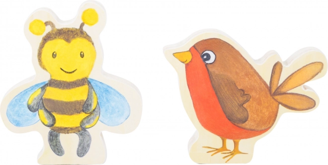 - Drvena slikovnica + 2 drvene figurice (pčelica, ptičica)