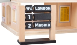 Otkrijte realističan željeznički kolodvor koji potiče maštu, igru uloga i finu motoriku. Robusna konstrukcija od certificiranog FSC drva i promišljeni detalji poput automata za karte, ploče s polascima i trgovinice jamče sate zabave. Otvoreni krov omogućuje pristup svim zonama igre i olakšava igru većem broju djece odjednom.
