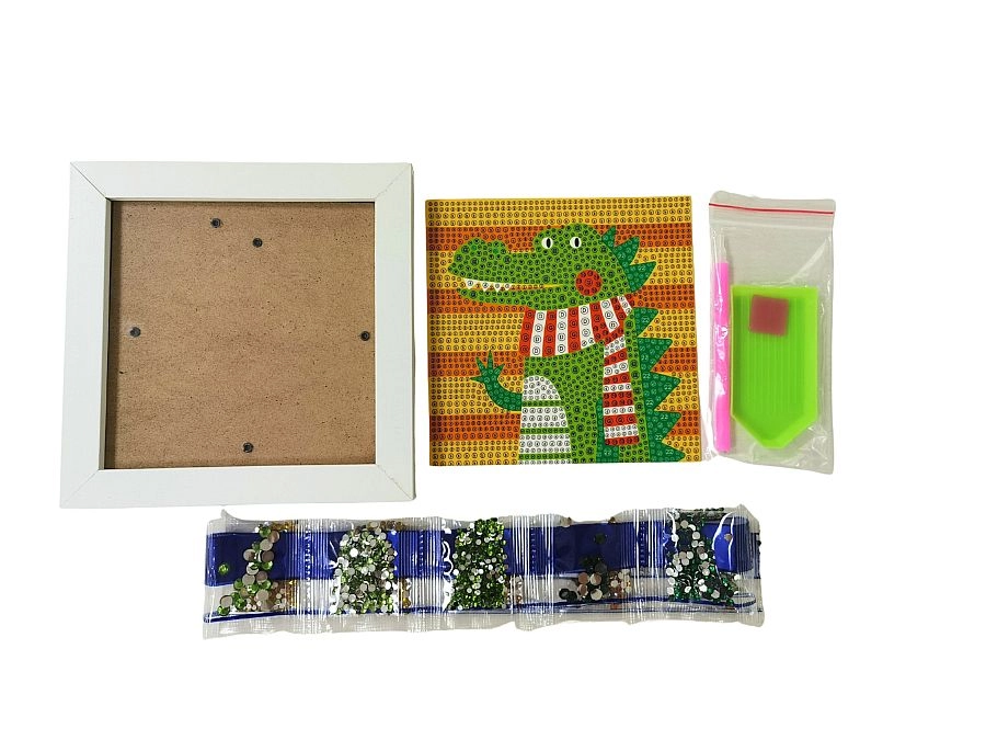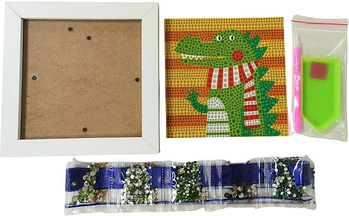 Ovaj kreativni set za dijamantno stvaranje s motivom krokodila oduševit će i djecu i odrasle. Zahvaljujući šarenom predlošku i jednostavnoj aplikaciji dijamanata pomoću olovke i silikonskog gela, predivnu blještavu sliku može izraditi baš svatko. Gotovo djelo možete ponosno izložiti u priloženom bijelom okviru.