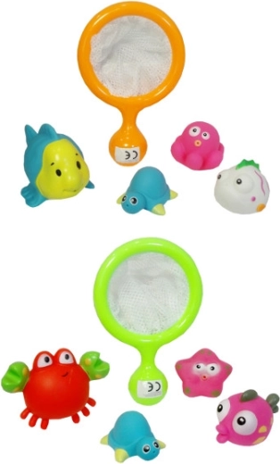 Preslatke piskutajuće životinjice za kupanje razveselit će svako malo dijete i pretvoriti kupanje u igru. Morski motivi poput raka, ribice, kornjače i morske zvijezde šareni su, lako se hvataju i ugodno piskutaju pri stisku. U pakiranju se nalazi i plastično cjedilo s kojim djeca mogu loviti životinjice iz vode, razvrstavati ih i usavršavati svoje vještine.