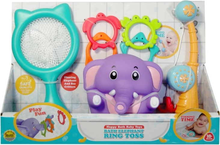 Uljepšajte djeci vrijeme u kadi s preslatkom kupaoničkom igračkom u obliku slona. Položite slonića na površinu vode i pustite djecu da bacaju prstenove na njegov surl, a zatim ih mogu lako izvaditi pomoću mrežice ili štapića. Igra razvija finu motoriku, koordinaciju oko–ruka i donosi puno zabave tijekom kupanja. Prikladno za djecu od 18 mjeseci. Isporučuje se u kartonskom pakiranju.