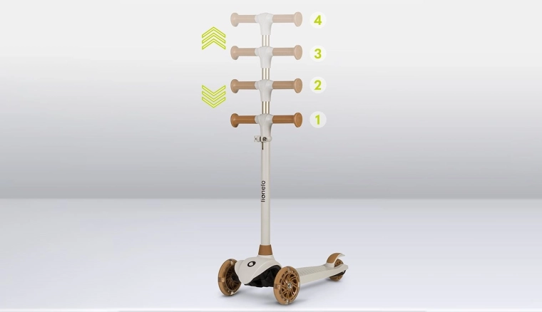 4-stupanjsko podešavanje visine upravljača (otprilike 65/70/75/80 cm) i stražnja nožna kočnica za pouzdano zaustavljanje čine vožnju udobnim i sigurnim doživljajem.