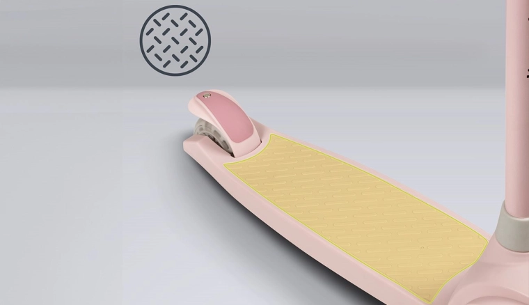 Dva prednja kotača i niska, protuklizna platforma daju malim vozačima sigurnost i podupiru pravilnu ravnotežu već od prvih vožnji.