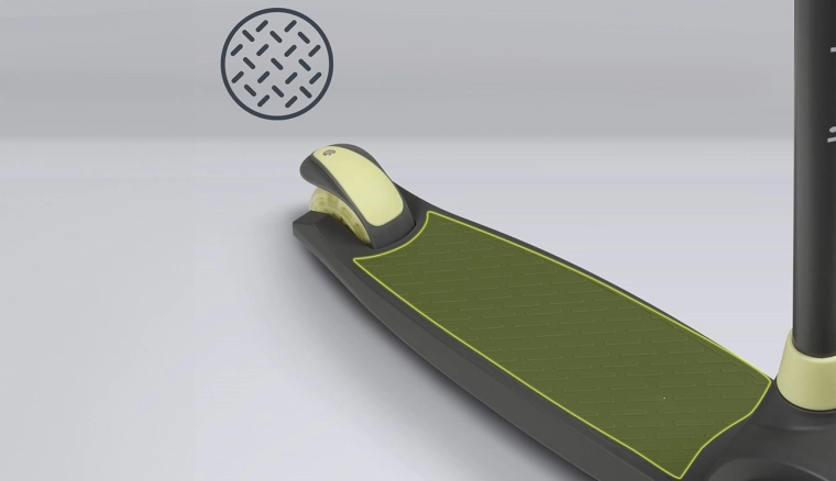 Protuklizna platforma povećava stabilnost, a stražnja nožna kočnica omogućuje glatko i sigurno usporavanje i zaustavljanje.