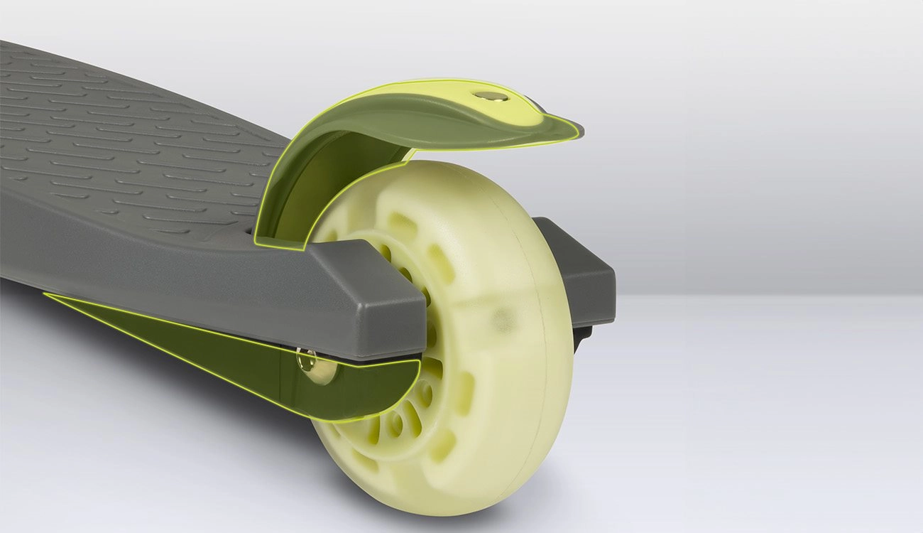LED svjetla u kotačićima svijetle tijekom vožnje, pa je dijete vidljivije, a vožnja zabavnija. Kvalitetni ABEC-7 ležajevi jamče gladak rad, a stražnja nožna kočnica omogućuje sigurno i jednostavno zaustavljanje. Ograničivač kuta upravljanja od 65° pomaže spriječiti preoštre zavoje i povećava sigurnost početnika.