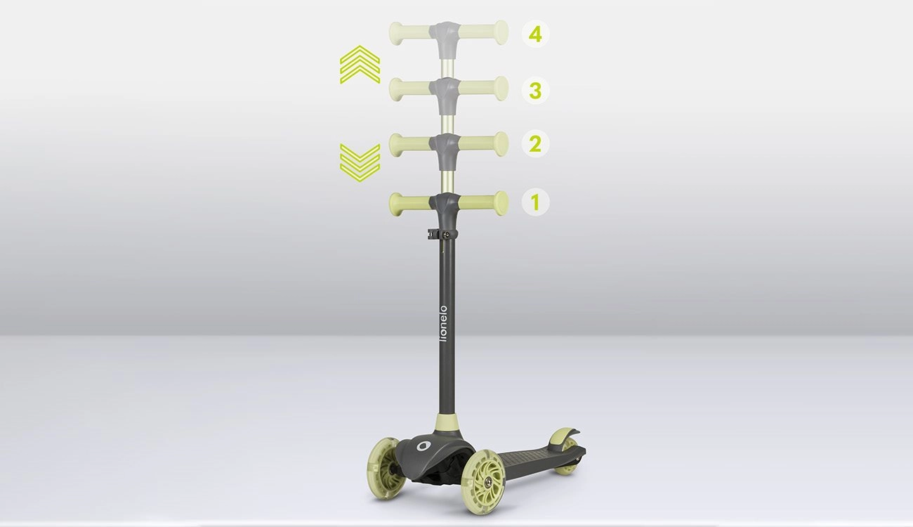 Visinu lako podesite na 65, 70, 75 ili 80 cm, pa će romobil ugodno služiti dulje vrijeme i prilagoditi se građi malog vozača.