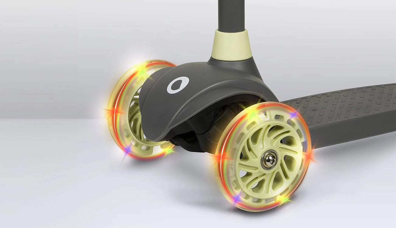 Prednji kotačići se pri vožnji osvjetljavaju bez baterija. Dijete je vidljivije, a vožnja zanimljivija, osobito u sumrak.