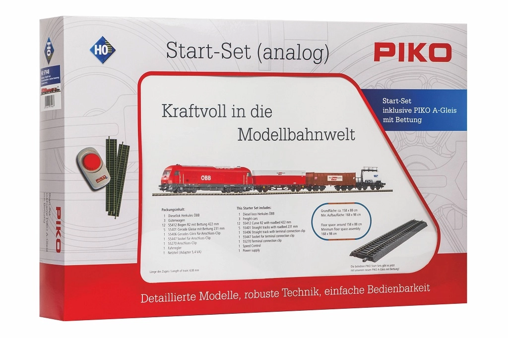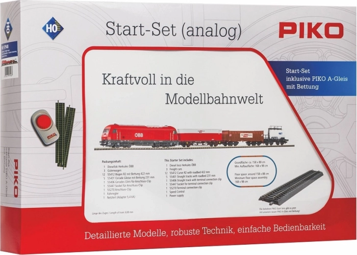 Kompletan modelarski set PIKO za mjerilo H0 koji sadrži sve za trenutačnu vožnju: diesel lokomotivu ÖBB Hercules, 3 teretna vagona, oval PIKO A-Gleis s podlogom, napajanje i analogni regulator. Zahvaljujući jednostavnoj montaži, pouzdanom radu i mogućnosti proširenja i digitalizacije (NEM 652) idealan je za početnike i napredne.