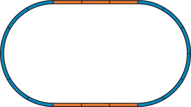 Osnovni oval s minimalnim radijusom 358 mm pristaje u manji prostor i može se u svakom trenutku proširiti dodatnim skretnicama i dijelovima.