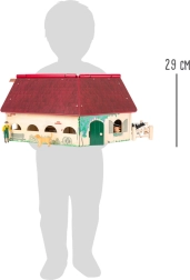 Ova drvena farma osmišljena je da potiče dječju maštu. Zahvaljujući detaljima poput otvarajućih krovova i kliznih vrata djeca mogu uprizoriti različite seoske scenarije.