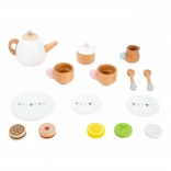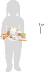 Ovaj lijepo izrađen dječji čajni set omogućuje malim domaćinima i domaćicama posluživati svoje goste s preslatkim šalicama, čajnikom i dodatnom opremom. Visoka kvaliteta masivnog drva osigurava robusnost i dug vijek trajanja igračaka, dizajniranih posebno za dječje ruke.