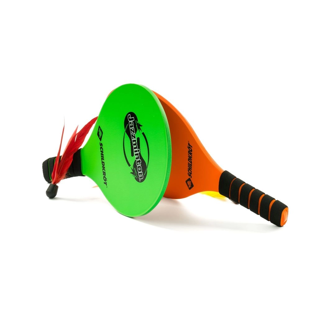 SCHILDKRÖT set za jazzminton donosi laganu i brzu reketnu igru za cijelu obitelj. Dvije lakirane rekete od čvrstog 7 mm drva (33 × 19 cm) odlično leže u ruci, protuklizne ručke osiguravaju siguran hvat i preciznu kontrolu udaraca. Tri pernate loptice s različitim svojstvima omogućuju prilagodbu tempa igre vašim vještinama i okruženju.