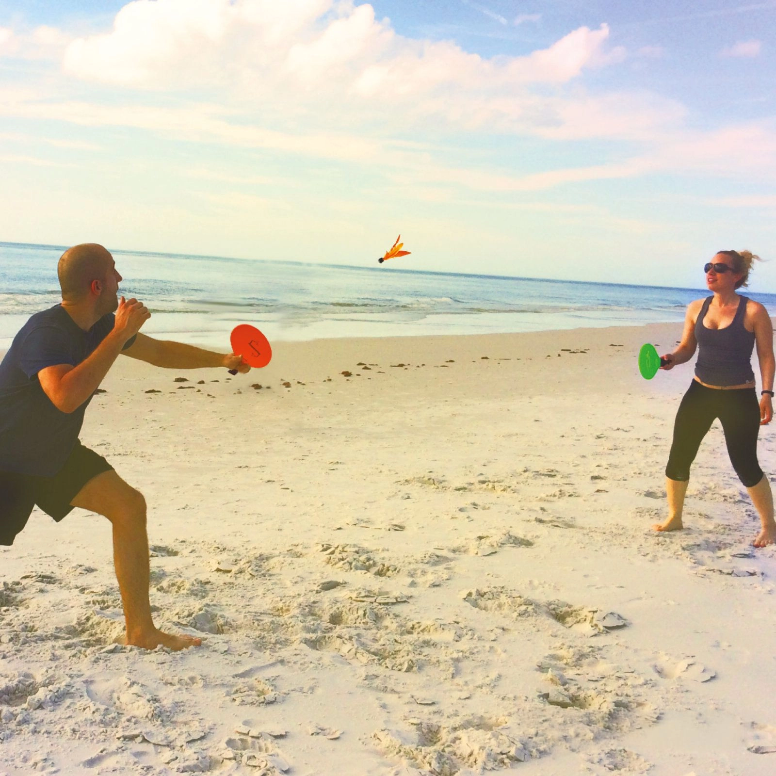 Crvena loptica je veća i sporija za opuštene izmjene na kraćoj udaljenosti, žuta je manja i brža za dinamičniju igru otprilike do 10 metara. Narančasta LED loptica zasvijetli nakon udarca zahvaljujući senzoru pokreta oko 10 sekundi – sjajan izbor za večernju i noćnu igru. Posebna konstrukcija perja osigurava stabilan let i preciznu putanju, pa je svaka izmjena glatka i zabavna.