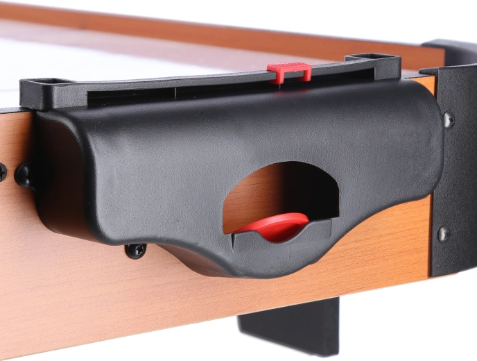 Stol se jednostavno sastavlja, a nakon igre može se pohraniti i u okomitom položaju, čime štedi prostor. Ručni klizni brojači s obje strane održavaju pregled nad rezultatom, a kompletna oprema u pakiranju omogućuje da počnete igrati odmah nakon raspakiravanja.