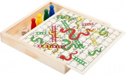 Ova društvena igra "Zmijske ljestve" nudi zabavu za cijelu obitelj. Cilj igre je doći s 1 na 100 i iznenaditi svoje protivnike. Ako stanete na pločicu sa zmijom, put se produžuje, dok vas ljestve pomiču bliže cilju. Igra je kompaktna i svi dijelovi su sigurno pohranjeni u svojoj vlastitoj kutiji, koja ujedno služi kao igraća ploča.