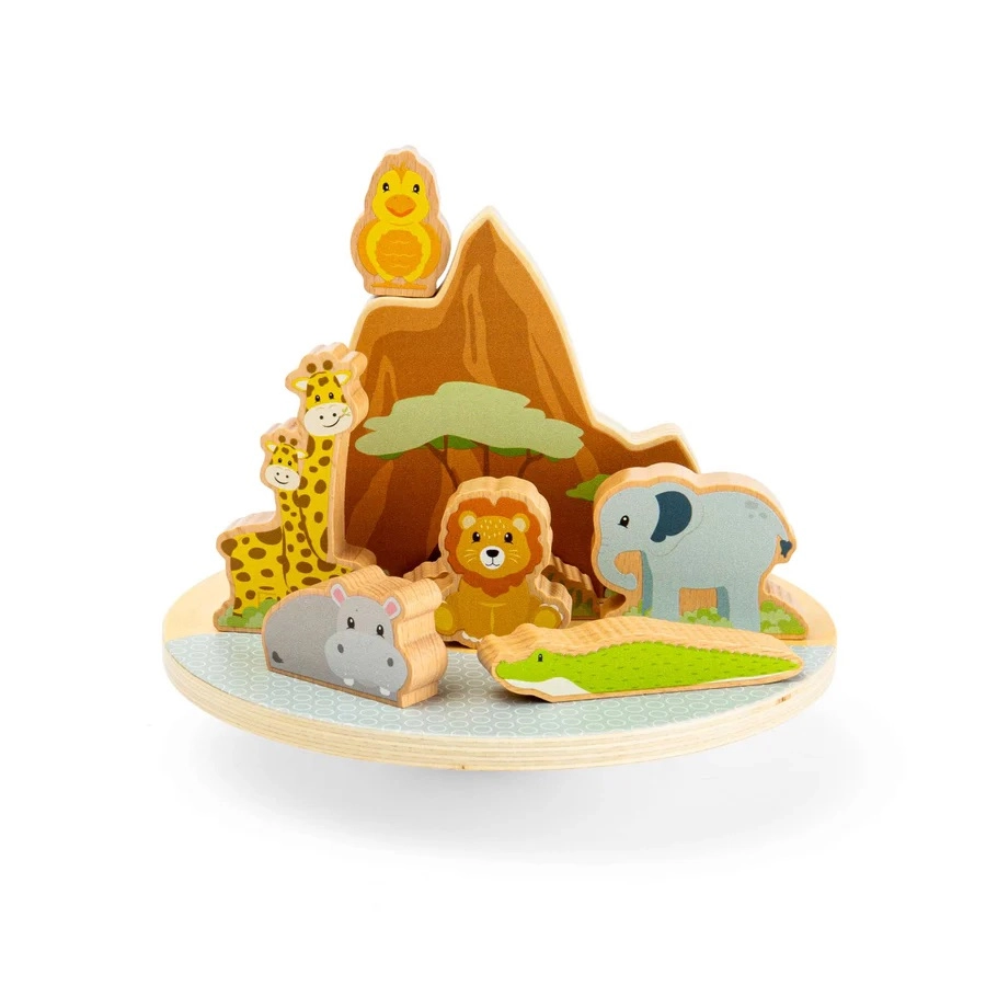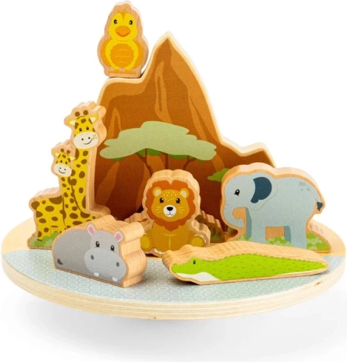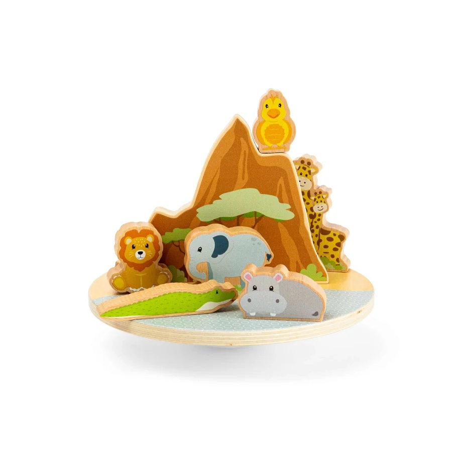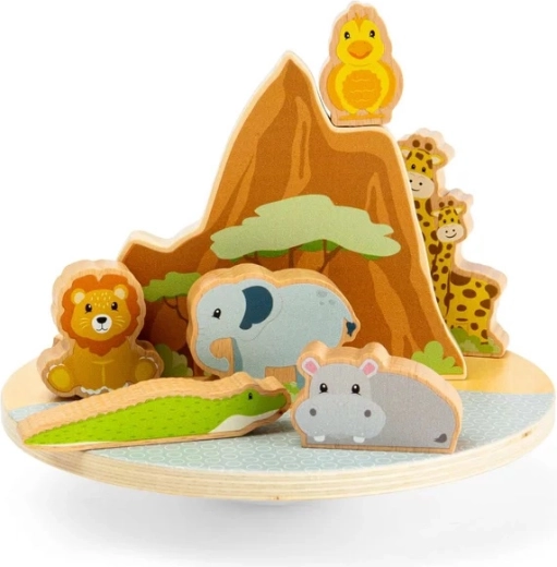 Balansirajuća igra džungle donosi djeci zabavu i učenje u jednom. Na nježno njihajućoj podlozi pokušavaju pronaći ravnotežu za lava, slona, žirafe, nilskog konja, krokodila i pticu. Šarene, masivne figurice savršeno leže u dječjoj ruci te potiču kreativno pripovijedanje i logičko razmišljanje.