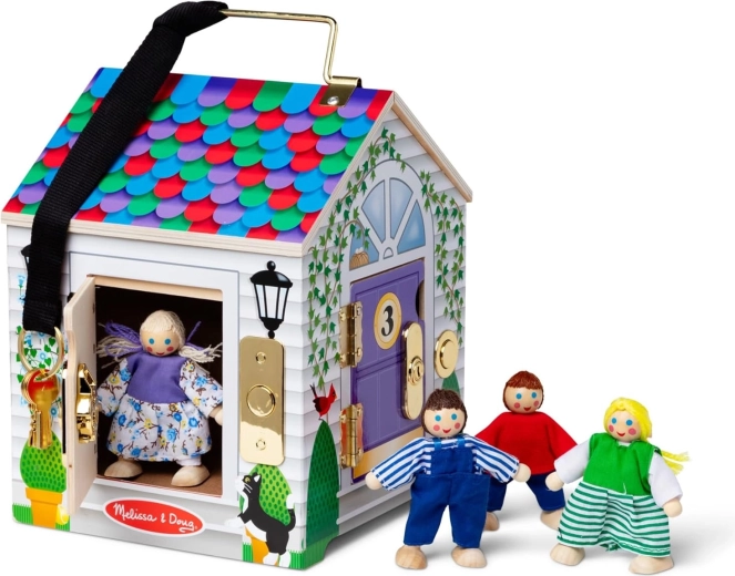 Čvrsta drvena izrada MELISSA & DOUG podnosi svakodnevnu igru. Zahvaljujući praktičnoj ručki, kućica je idealna i za putovanja.