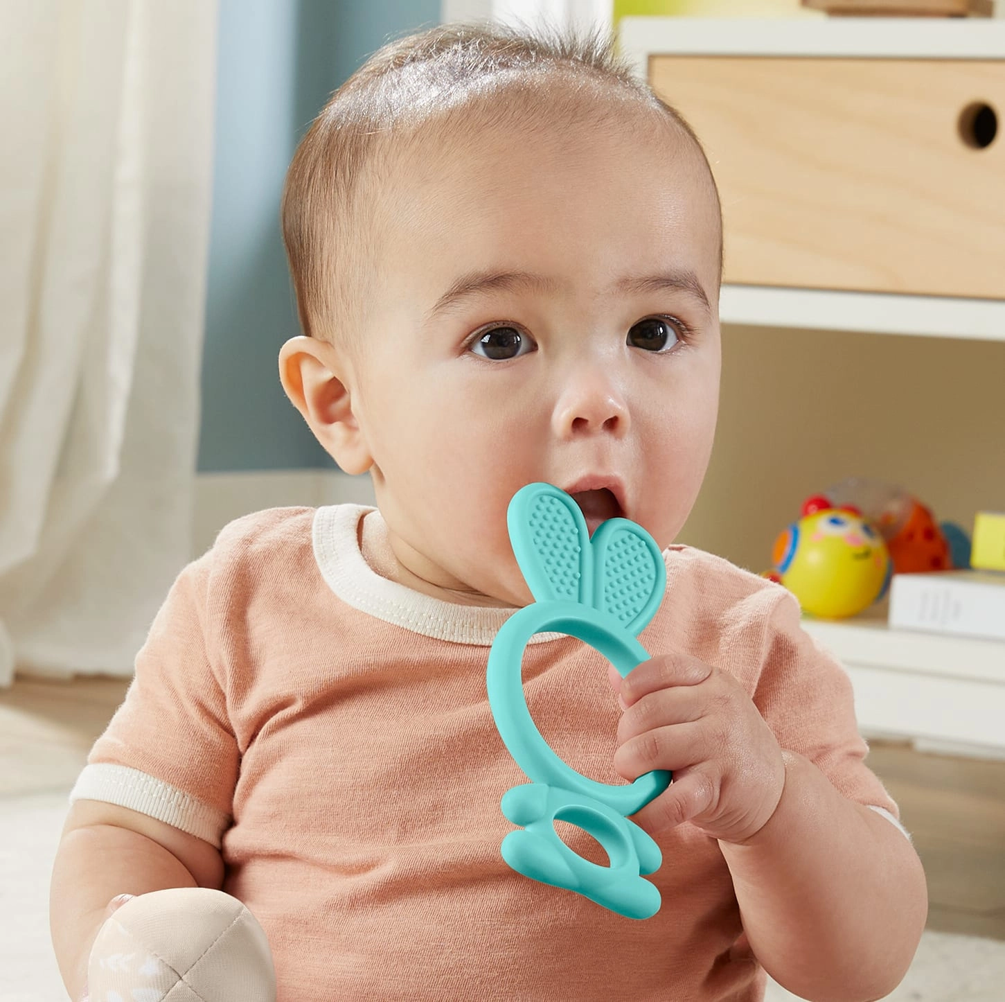 Grickalica FISHER-PRICE u obliku zečića dizajnirana je za prirodno olakšanje tijekom nicanja zubića te istovremeno podupire rane faze sensoričkog i motoričkog razvoja. Mekani, ugodni materijal i teksturirana površina nježno masiraju desni, dok razigrani dizajn potiče dijete na istraživanje i hvatanje.