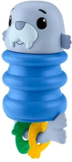 Otkrijte razigranu senzornu igračku iz serije Morska životinjice, koja potiče prirodnu znatiželju djece. Lagani i lako prihvatljivi tuljan od mekog silikona odlično leži u malim ručicama, a zahvaljujući zveckajućim i pokretnim elementima potiče sluh i koordinaciju oko–ruka.