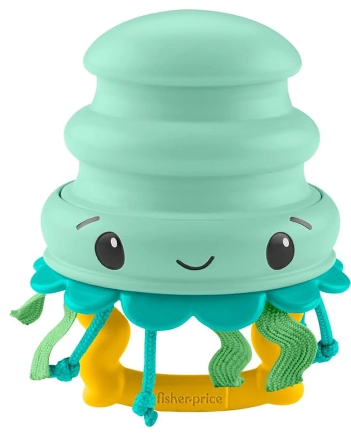 Preslatka senzorička zvečka meduza brenda FISHER-PRICE od mekog, sigurnog silikona razveselit će bebe od 3 mjeseca. Zahvaljujući teleskopskoj konstrukciji može se izvlačiti i sklapati, što potiče finu motoriku i učenje uzrok–posljedica. Različite teksture, pokretni dijelovi i funkcija grickalice donose olakšanje pri nicanju zubića i stimuliraju dodir i sluh.