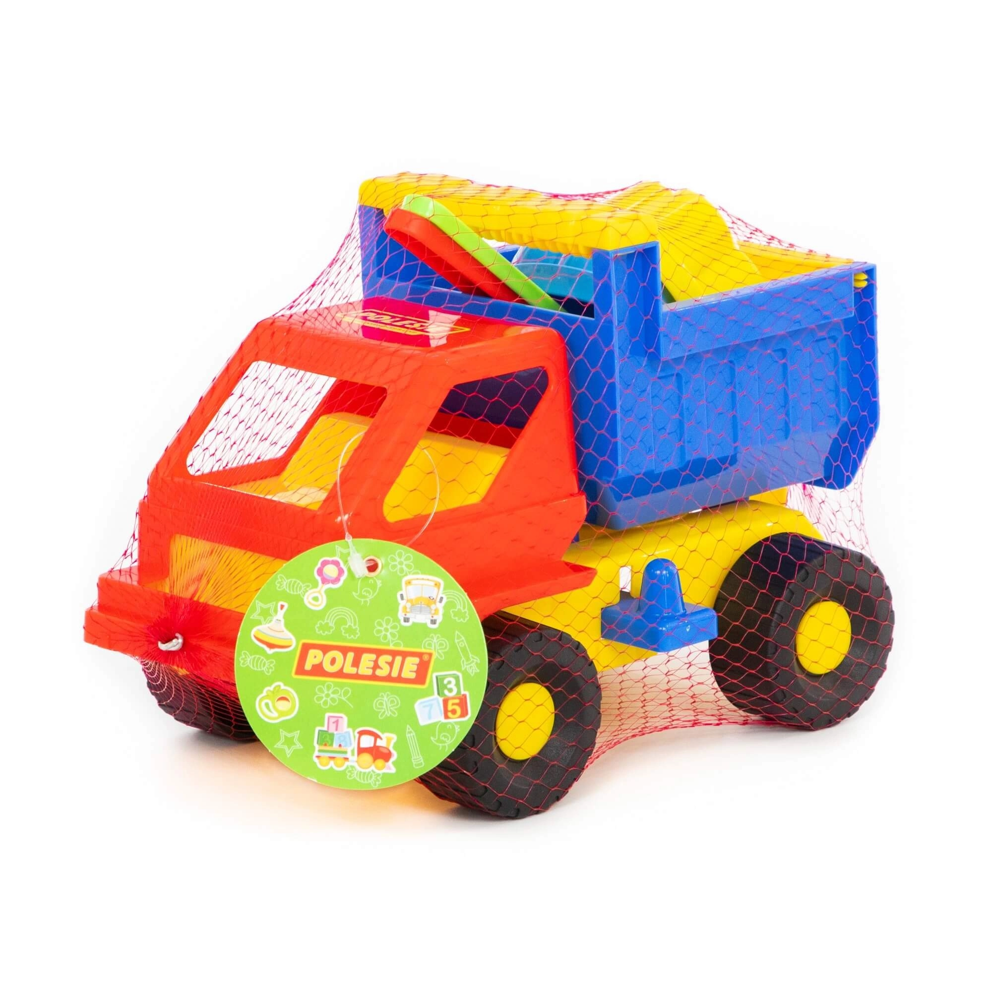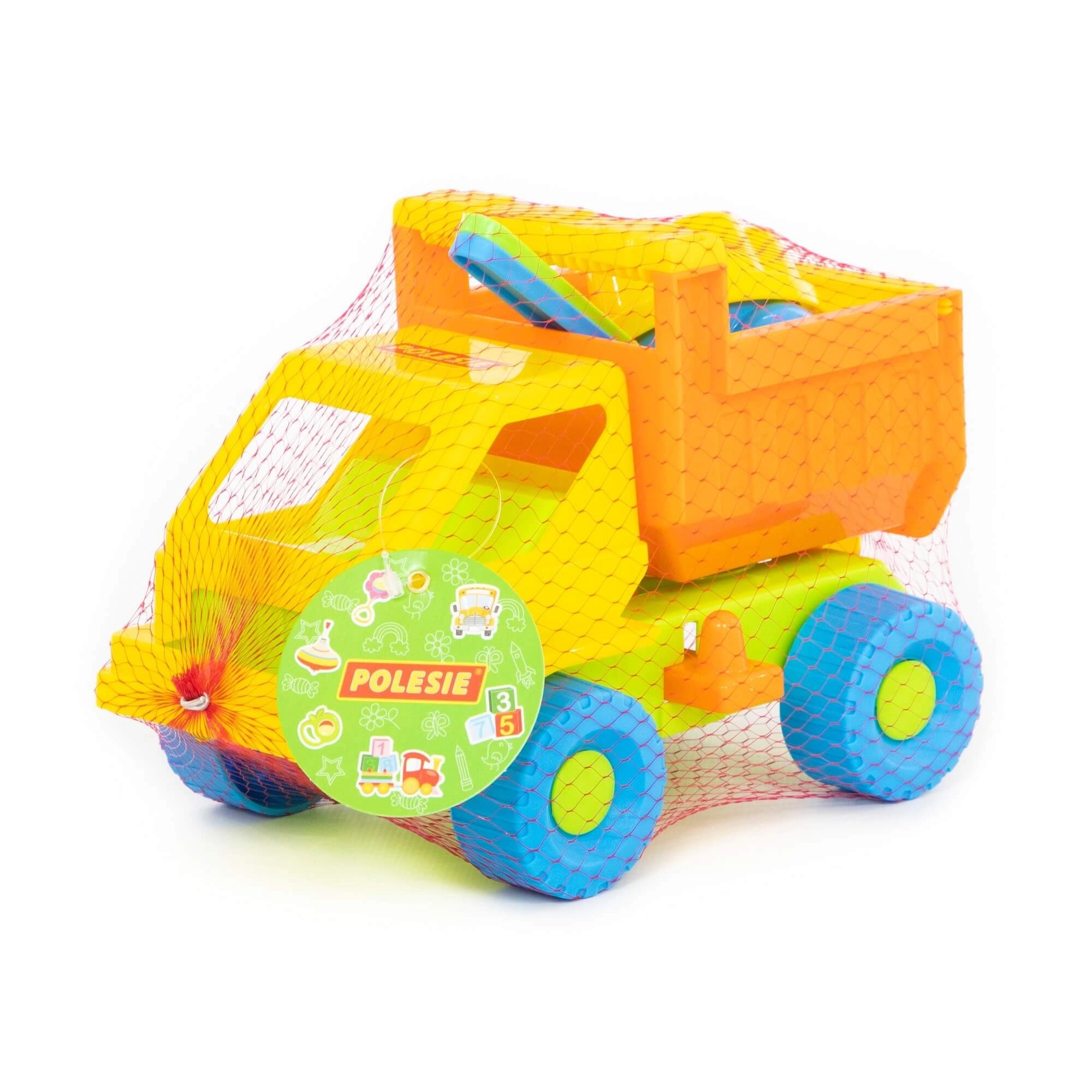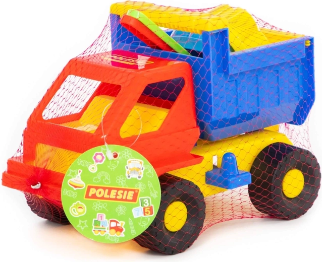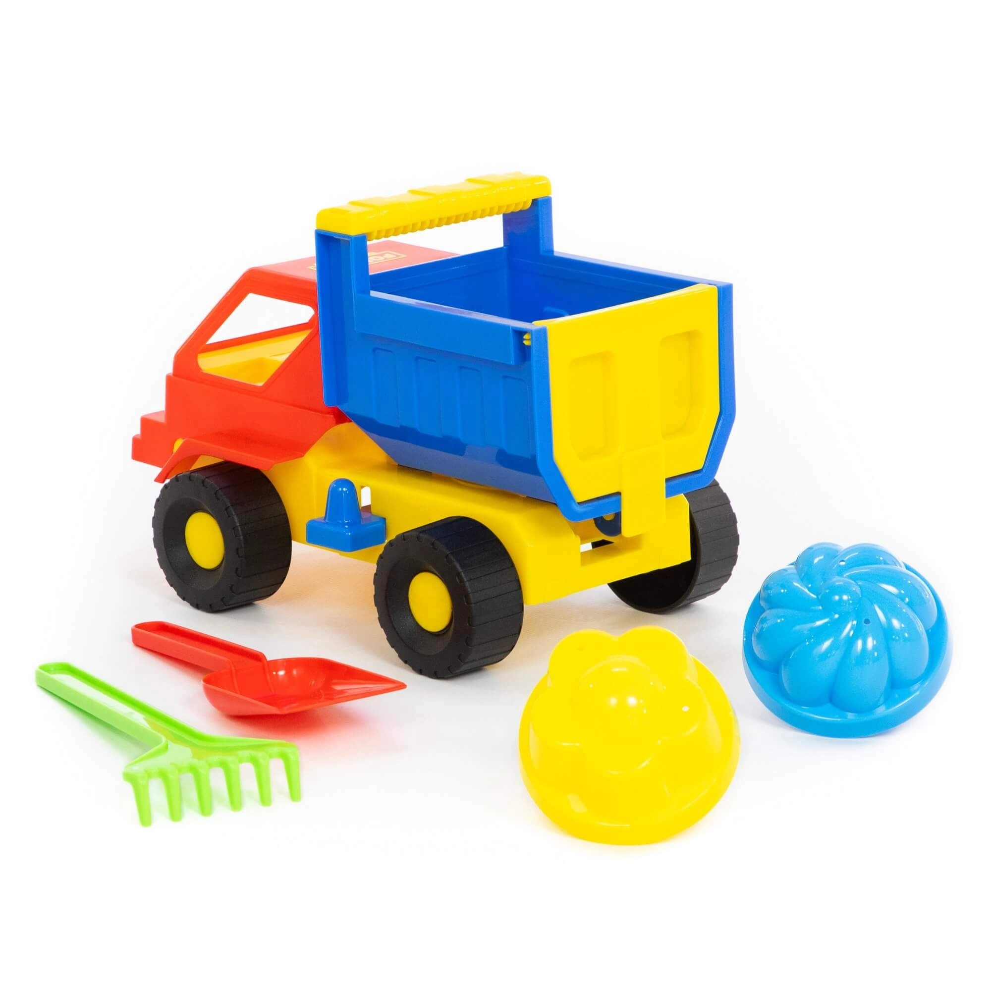 - Kompletna oprema: autić s kiperskom karoserijom, 2 kalupića, lopatica i grabljice.