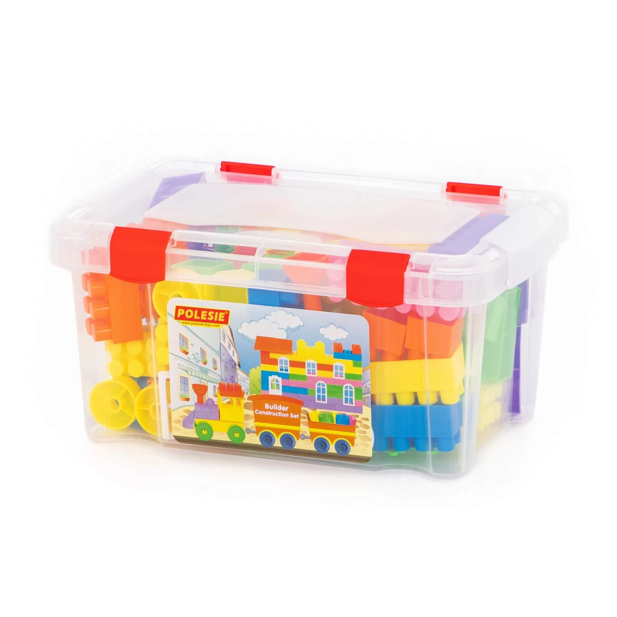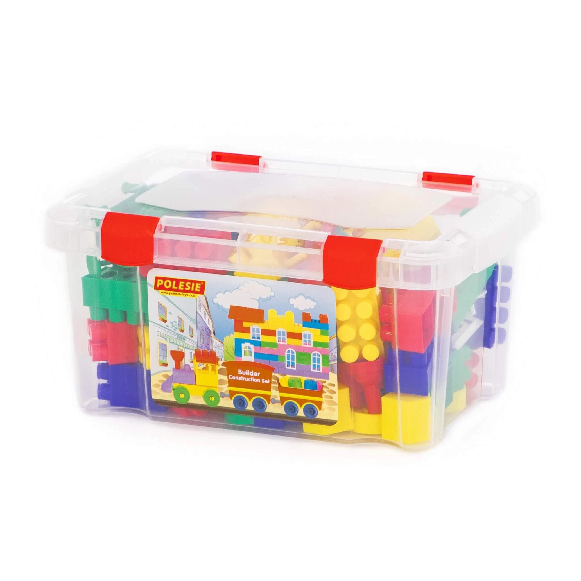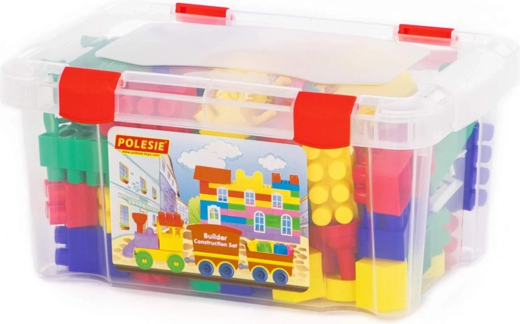 Praktična prozirna kutija s kopčama drži sve dijelove na okupu, olakšava prenošenje i spremanje nakon igre.