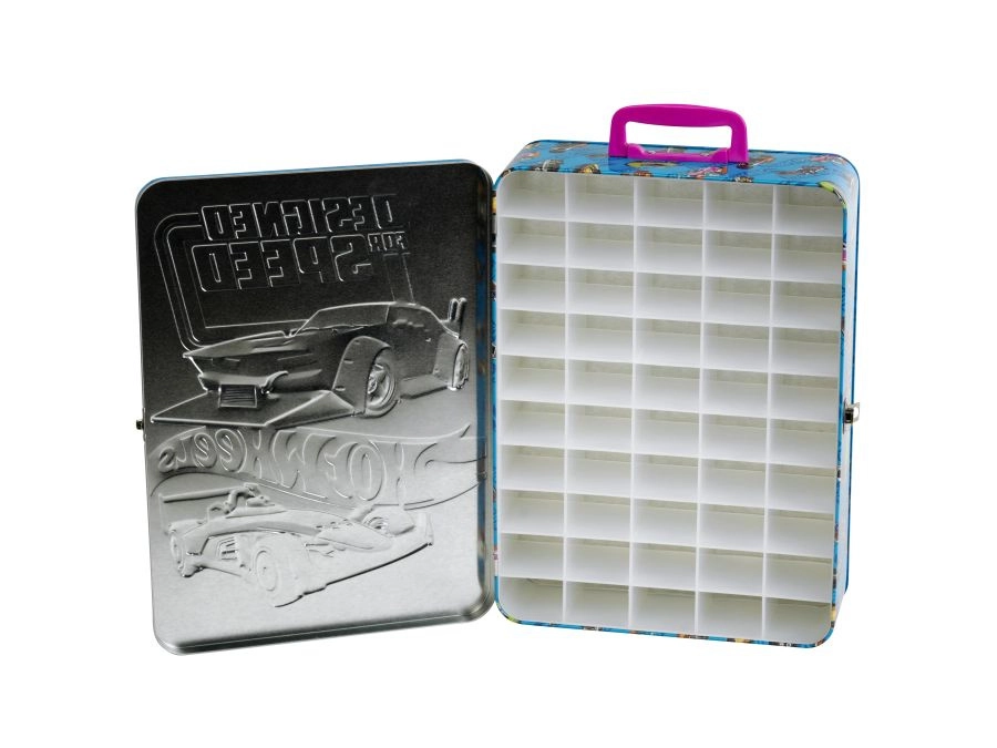 Izdržljivo metalno kućište s višebojnim tiskom i logotipom HOT WHEELS, udobna narančasta ručka i pouzdana metalna kopča protiv samovoljnog otvaranja čine ovaj kofer idealnim rješenjem za pohranu kod kuće i na putu.