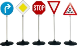 Set „Veliki prometni znakovi 5 kom” donosi djeci realističan doživljaj prometnog okruženja. Vjerno izrađeni znakovi na stabilnim postoljima potiču igru na prometnom igralištu, razvijaju snalaženje u prometu i uče poštovanju pravila.