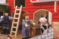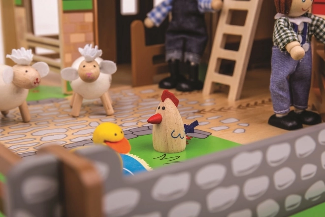Set je izrađen od kvalitetnog drva iz odgovornih izvora i kompatibilan je s dodatnom opremom koja se može naknadno kupiti. Realistični elementi poput ribnjaka za patke, garaže za traktor i ogradica s pokretnim vratima potiču maštovitu igru, pripovijedanje i razvoj fine motorike.
