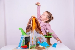 S ovim setom vaša djeca ne samo da će se zabaviti, već će i naučiti nešto o dinosaurusima i vremenu u kojem su živjeli. Sastavljanje drvenih dijelova je jednostavno, a rezultat je krajolik koji poziva na kreativnu igru. Proizvod potiče razvoj vještina, mašte, socijalnih sposobnosti te koordinacije djece.