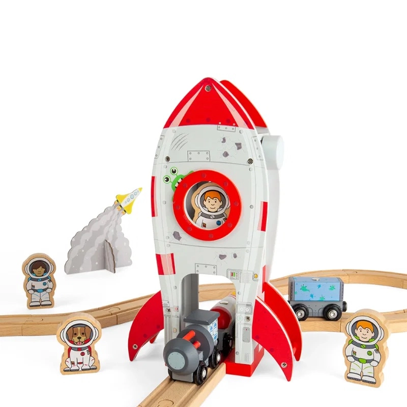 Raketa je izrađena od kvalitetnog FSC certificiranog drva i ima izdržljivu izradu pogodnu za svakodnevnu igru. Djeca razvijaju maštu, komunikaciju i koordinaciju ruku zahvaljujući jednostavnom rukovanju dodacima. Kompatibilnost s većinom drvenih željezničkih pruga za vlakove jamči bezbrižno proširenje vaše kolekcije.