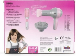 Predstavljamo dječji fen Braun s difuzorom i četkom idealan za male frizerke. Ovaj proizvod je proizveden pod licencom Braun, što mu daje realistican izgled, sličan stvarnom uređaju. Proizvod je potpuno siguran, fen samo puše zrak bez grijanja, čime se osigurava sigurnost za dječje ruke.