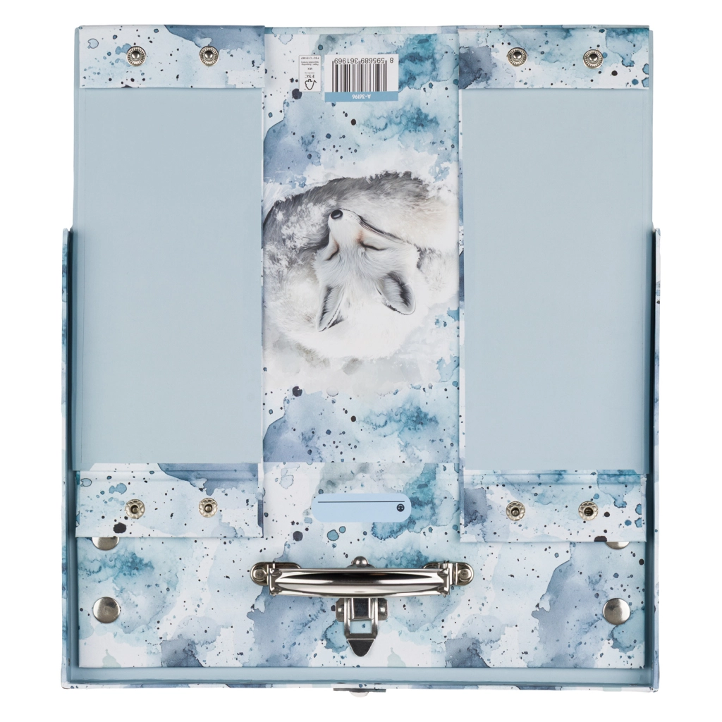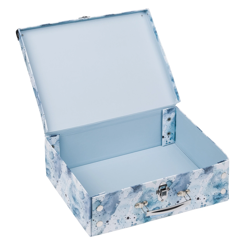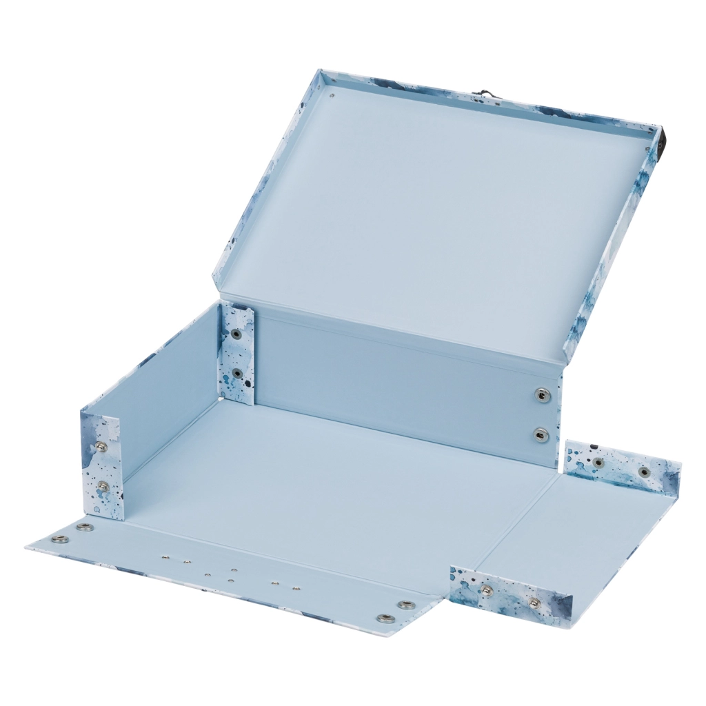 Praktična izvedba s klasičnom kopčom i udobnom metalnom ručkom osigurava lako prenošenje. Površina od čvrstog laminiranog papira jednostavna je za održavanje i otporna na uobičajeno trošenje.