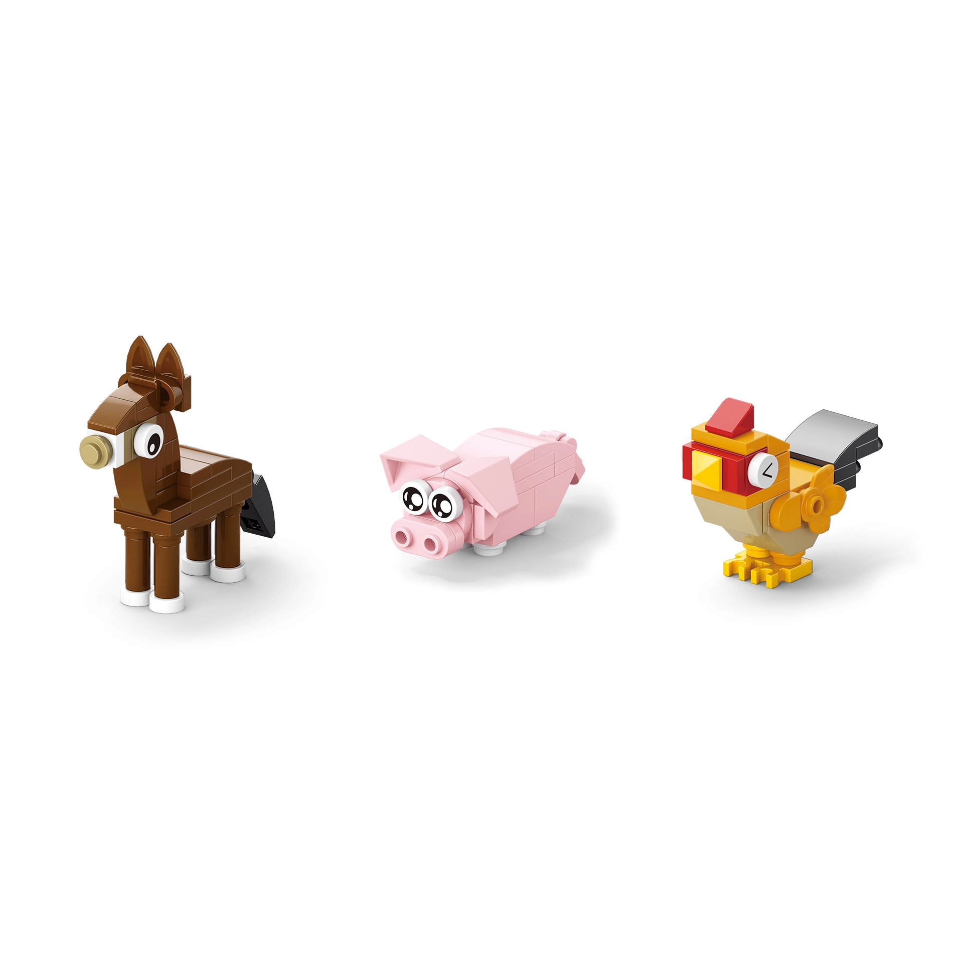 Ovaj svestrani konstruktor donosi djeci radost otkrivanja života na farmi. Od pojedinih kocaka može se složiti do 12 vrsta životinja, pa svaki put mogu stvoriti drugačije gospodarstvo i smišljati nove priče. Dijelovi su kompatibilni s uobičajenim konstruktorima, stoga je proširenje jednostavno, a zabava ne prestaje.