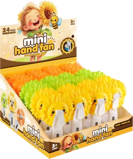 Zabavan i praktičan ručni ventilator u obliku suncokreta za brzo osvježenje u vrućim danima. Mehanički pogon s zamašnjakom bez baterija, sigurna plastična elisa i jednostavno upravljanje stiskanjem ručice – idealno za djecu i odrasle na putu, izletima i uz vodu.