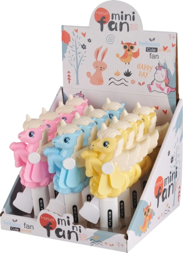 Uživajte u osvježenju s preslatkim ručnim ventilatorom u obliku jednoroga. Zahvaljujući jednostavnom stiskanju ručice stvara ugodan strujanje zraka bez potrebe za baterijama ili punjenjem. Lagani plastični dizajn idealan je za putovanja, park i godišnji odmor.
