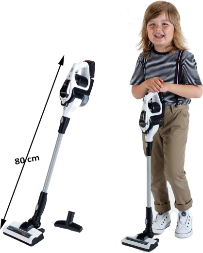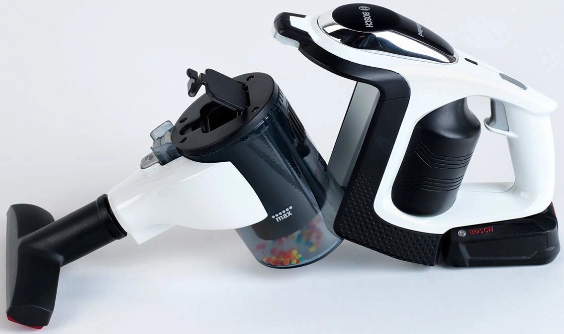 Autentični dječji usisavač BOSCH Unlimited u crno-bijeloj izvedbi sa srebrnom cijevi vjerno oponaša pravi kućanski uređaj. Zahvaljujući LED osvjetljenju i rotirajućim kuglicama u prozirnom spremniku, pri “usisavanju” djeluje vrlo realistično, a pritom ostaje potpuno siguran za igru.