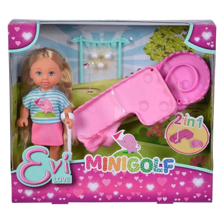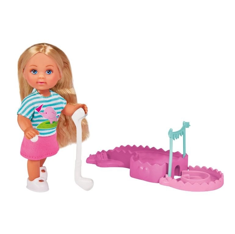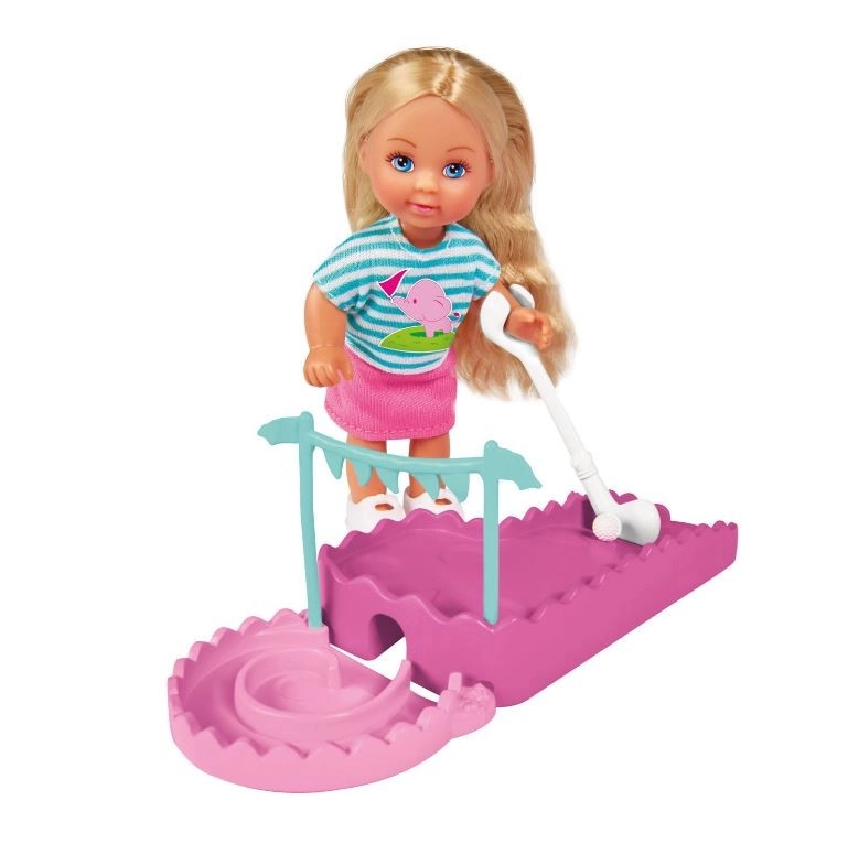 Otkrijte zabavni svijet sporta s lutkicom Evičicom i njezinim minigolf setom. Slatka plavokosa lutkica s pokretnim zglobovima odjevena je u moderan sportski outfit i dolazi s golf palicom, loptičicom i mini igralištem kako bi djeca mogla uživati u igri uloga i aktivnoj igri. Igra potiče maštu, kreativnost i socijalne vještine tijekom svakodnevnoga igranja.